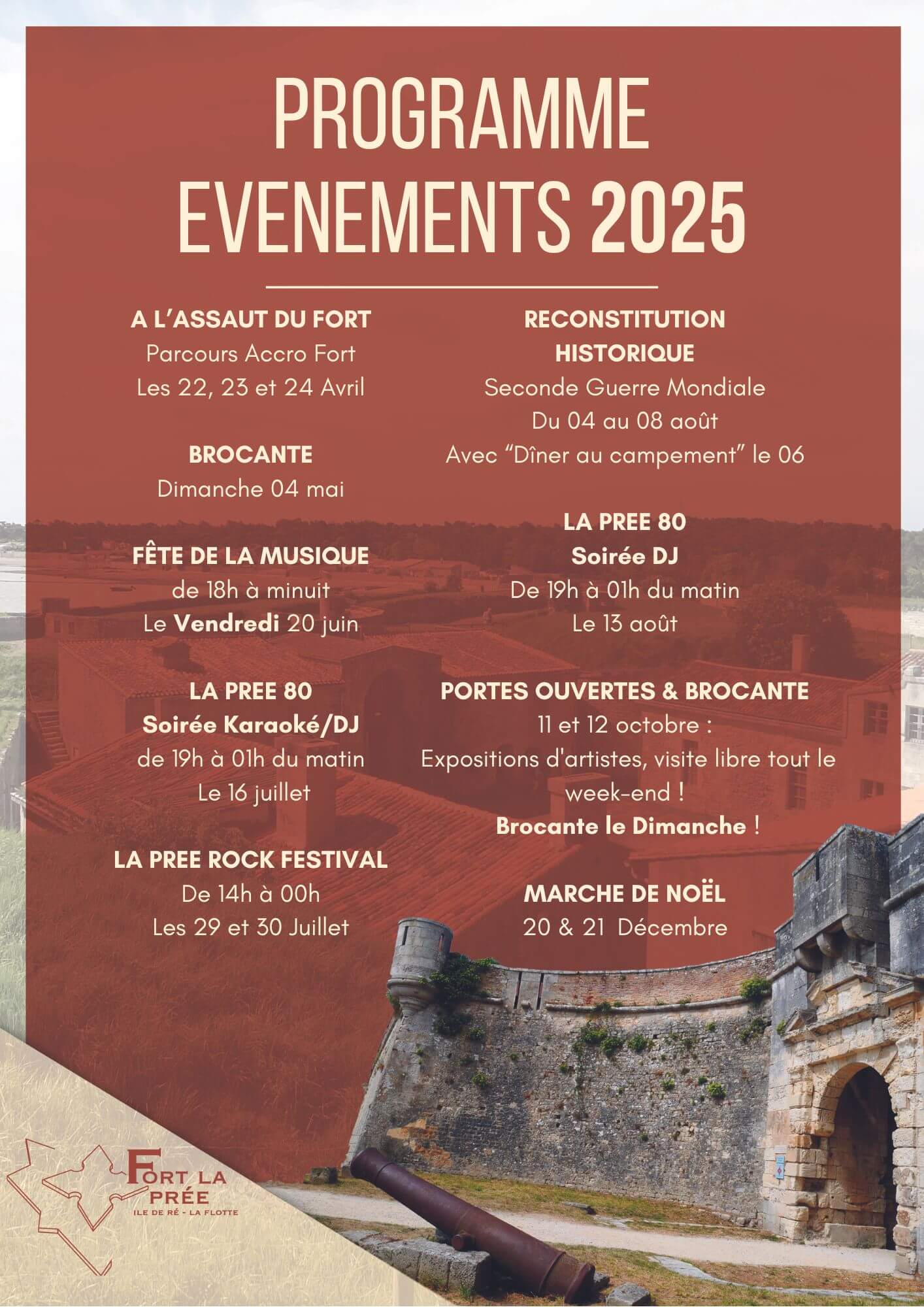 Tout au long de la saison, le Fort la prée organise différents événements pour le plaisir de tous ! Une brocante, du théâtre, la fête de la musique, des reconstitutions historiques…